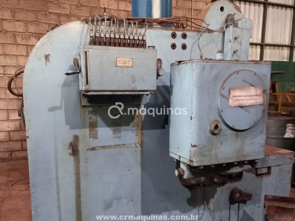 Comando: painel elétrico lateral com botoeiras e chave geral, pedal de acionamento para operação.